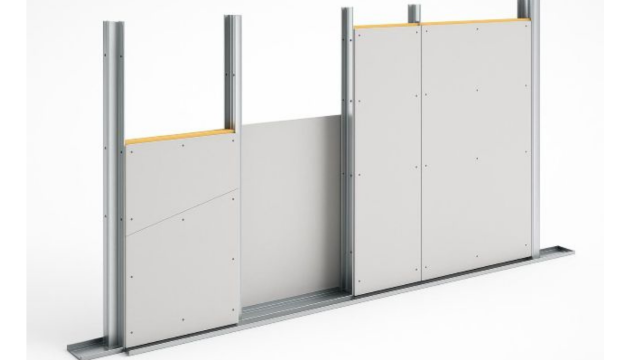 - Sobre a estrutura são instaladas duas camadas de placas de gesso acartonado, podendo incluir uma manta vinílica de alta densidade (MLV) entre elas.